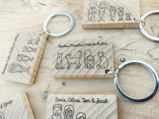 Porte clé famille bois massif