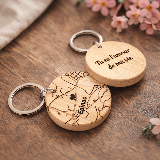 Porte-clés en bois massif "Maps" – Un souvenir gravé
