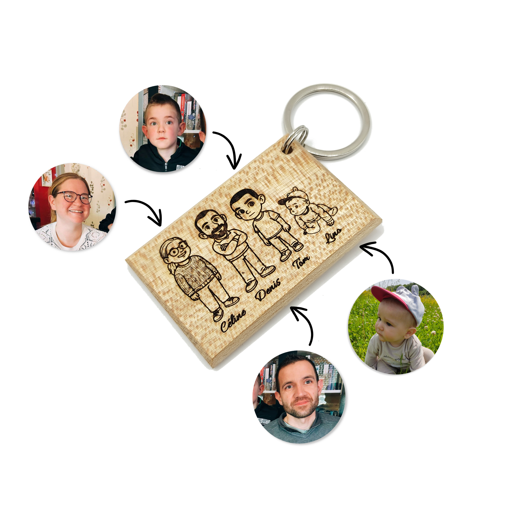 Porte-clés en bois – Avatars gravés à partir de vos photos